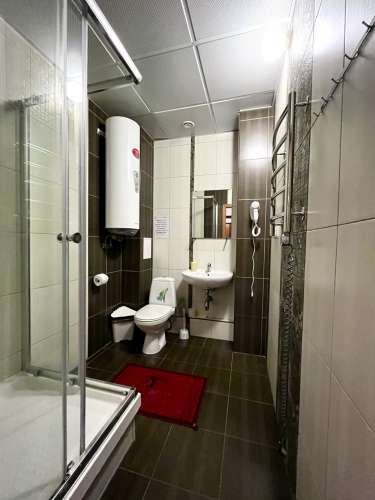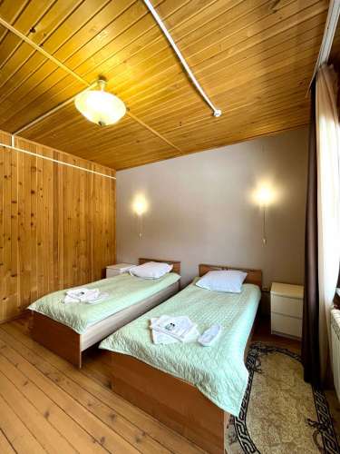 В номере: двухспальная или две односпальные кровати, две прикроватные тумбочки, два стула, журнальный столик, холодильник, чайник электрический, ТВ с плоским экраном.